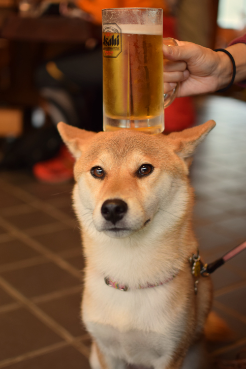 神社までのお土産屋さんが並ぶ商店街に、店内ワンちゃんOKのお蕎麦屋さんがありました。調子に乗ってビール飲んじゃった。