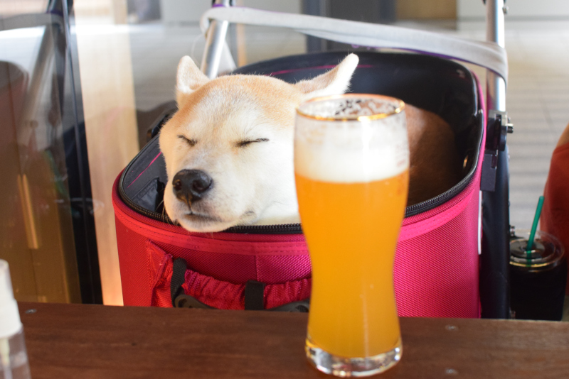 20/11/7に「リトル デリリウムカフェ ハレザ池袋」という初めて訪れるカフェでGoToEatを使いました。「ペットOK、テラス席、クラフトビール」で検索ヒット。AirBuggyのドームの部分を外したら、コムギがカートの縁にアゴ乗せして可愛かったです。