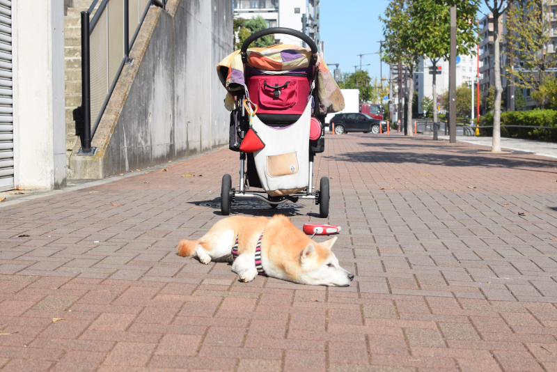 土日はとても暖かかったです。11月中旬だというのに飼い主は半袖でした。コムギは散歩の帰りに歩道で日向ぼっこを始めてしまい、道行く人にクスクス笑われてしまいました。アスファルトがいい具合に暖かくなっているので、ポカポカして気持ちいいんだと思います。