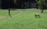 一人がエリカラをしたコムギを抱え、もう一人が嫌がって牙をむいて抵抗しているコムギが口を開けた瞬間に針なし注射で薬を投入。意外にも上手くいきました。改良の余地はありますが、8割ぐらいの薬は投与できました。