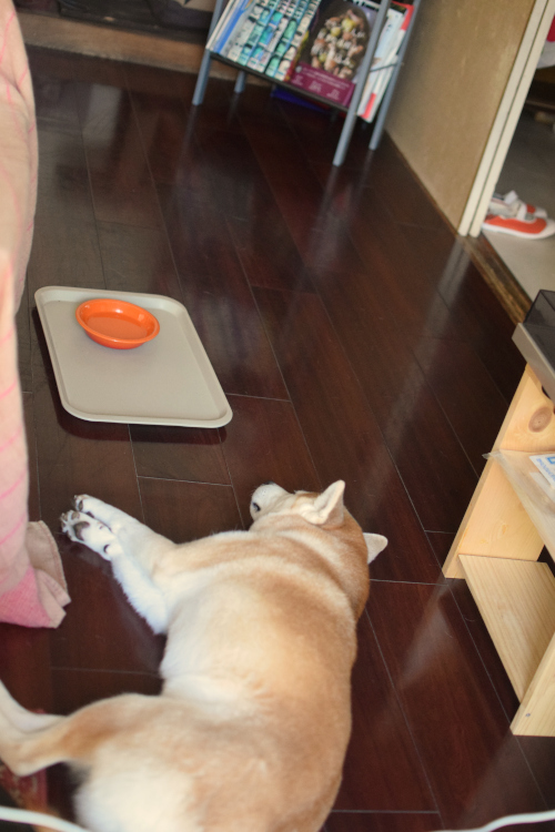 器の前で眠るコムギ 。どうしてあげたら良いものか…