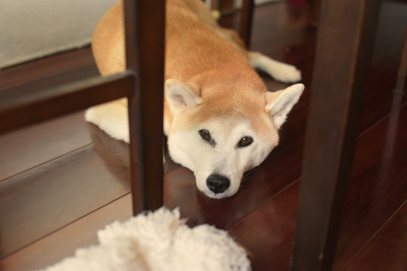 午前8時にコムギが散歩に行きたいというので連れて行ったのですが、食べられる草を探して落ち着きがありません。この行為は、お腹の調子が悪い時のコムギの行動です。案の定、散歩から帰った後、ご飯を食べません。