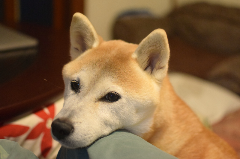 オーブンレンジに全然慣れないコムギ。写真は稼働中のオーブンの音が怖くて、飼い主に身体を寄せてきているところです。膝にアゴを乗せています。とても可愛いです。怖い時とお腹が空いた時以外にアゴ乗せしてくることはまずないのでとても貴重な瞬間ですが、コムギにとってはあまり嬉しくない状況なのです。