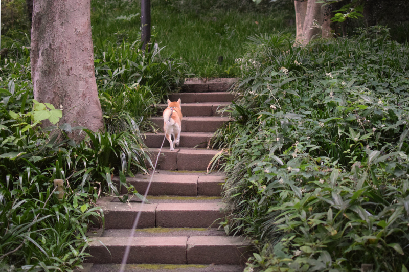 久しぶりに訪れたコムギはテンションが上がって、公園内を楽しそうに走り回っていました。コムギを追いかけて階段を駆け上がるのはしんどいけれど、コムギが楽しそうなので本当に来てよかった。木々が多く、心地よい空気が、心にも身体にも絶対に良いはずです。コムギよりも人間の方が癒されてるかもしれません。