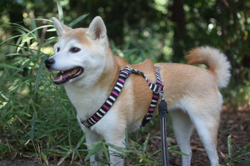 お昼前におとめ山公園に行ってきました。芝生エリアは子供達で賑わっていたけれど、階段のある森林エリアはほぼコムギが独占状態でした。近くの小学校で運動会の練習をしているのか、大音量の音楽と徒競走のピストル音が聞こえてきて、コムギが「何?何?」という顔をしていました。「帰る!」と言い出すかと思ったけれど、階段エリアを走り回ってとても楽しそうでした。
