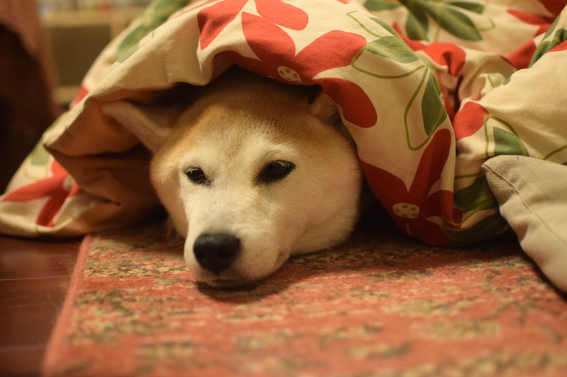 今日は寒かったので、コムギの大好きなこたつを始めました。