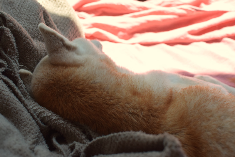寝ている写真ばかりで恐縮ですが、一日中、自分の側で寝ているコムギが可愛くて。。