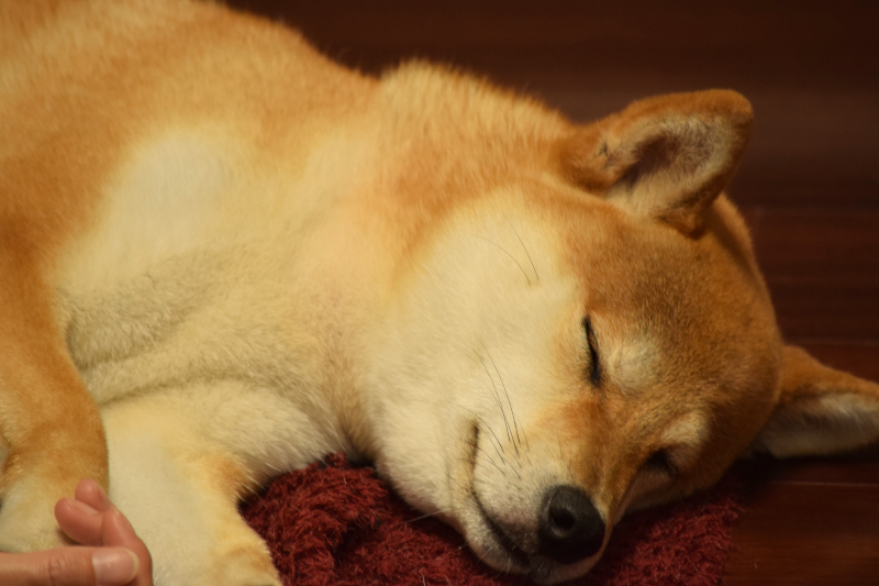 この時期のコムギの写真が圧倒的に多い理由は、一眼レフカメラを購入したからですね。コムギの手を触っても全然起きない。相当疲れてるようです。ああ、可愛い。。