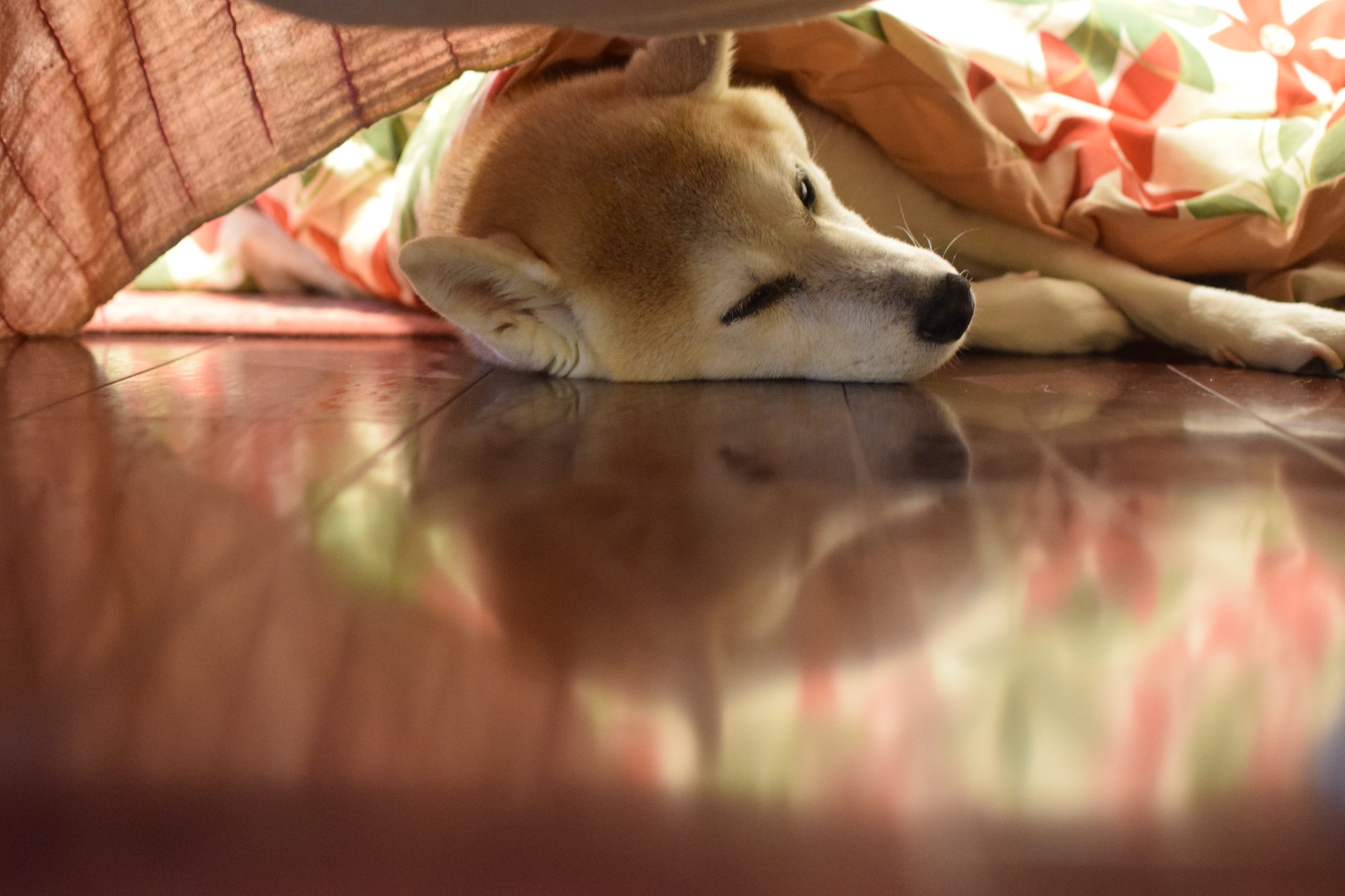 便の話ばかりで恐縮ですが、20/10/27は少し柔らかめでしたが、20/10/28は硬い便が出ました。ヤッター。正常なのが出たのはホントに1ヶ月ぶりなんじゃないだろうか。これが1週間ぐらい続いてくれたら少しは安心できるのだけれど。在宅ワークの間、コムギはずっと側にいる。コタツでお昼寝して気持ちよさそう。コタツから顔を出すが、ソファのしたに隠れているのでほとんど姿を拝めない。でもここがとても落ち着くようだ。
